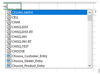 Later, while I was working on my project, I noticed that as I entered a formula into Excel, Excel would then offer a list of suggestions.