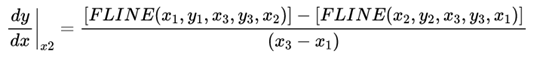 The Tangent at point (X2, Y2) can then be express in terms of FLINE
