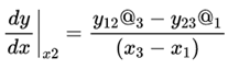 This report presents a unique approach for the Numerical Differentiation of Tabular Functions. This approach focuses on the local shape of the Tabular Function, selecting all sets of three adjacent data points. The key features of this process are represented in the following diagrams.