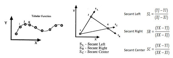 Consider a typical interval of the Tabular function. Focus on point J, where the Data Point J runs from Point 2 to Point N-1. At each interval construct, the Secants related to the adjacent points.