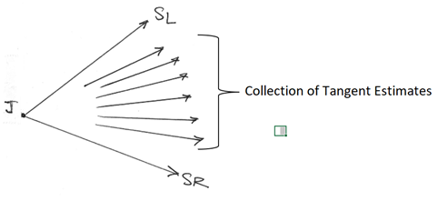 The Slope at Point J is estimated by the average of the Tangent Estimates that fall between the MIN(SL, SR) and the MAX(SL, SR).