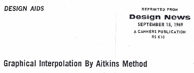 I first became aware of Aitken’s Graphical Construction of Lagrange Parabolic interpolation from an article that appeared in the Design News Magazine.