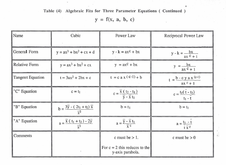 Experience has shown that the selection of the appropriate form for the curve fit is very straightforward and poses no more of a problem then the selection of the appropriate French curve.